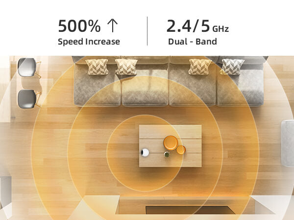 • Dual-Band Wi-Fi 6: Relish a strong, unswerving connection with our advanced Dual-Band Wi-Fi 6. It delivers a whopping 500% speed increase over its predecessor across both 2.4GHz and 5GHz frequencies, ensuring seamless streaming and reliable, lightning-fast connectivity.